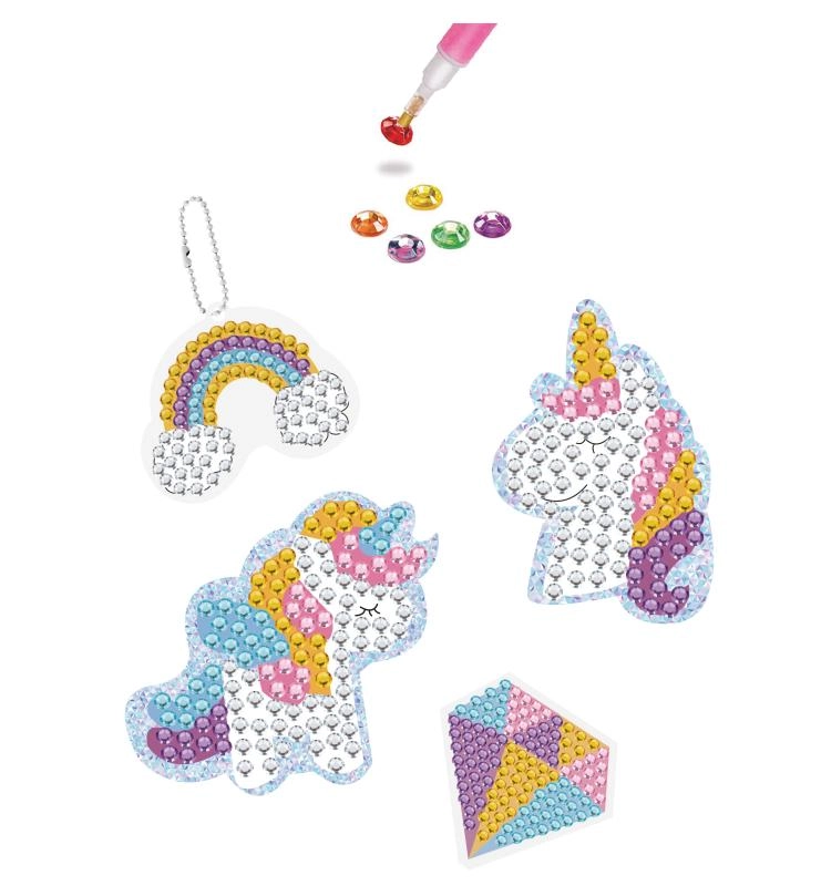Met deze set verandert elke kleine maker in een juwelier. Volg gewoon het voorbeeld, plak de glinsterende steentjes en in een mum van tijd ontstaan unieke hangers en stickers met fantasymotieven. De afgewerkte creaties kun je aan een rugzak, etui bevestigen of aan vrienden cadeau doen.