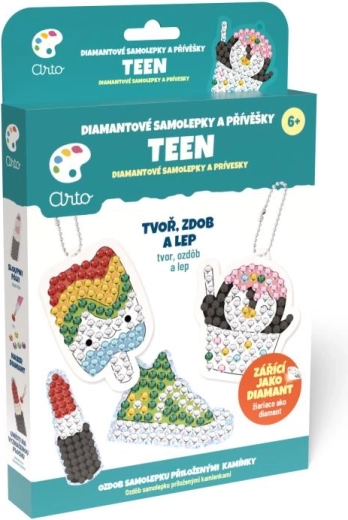 Verander ideeën in glinsterende decoraties! Met de ARTO creatieve set maken kinderen eenvoudig originele hangers en stickers. Volg gewoon het voorbeeld, plak de kleine "diamanten" op de gemarkeerde plekken en in een mum van tijd ontstaan schitterende creaties die een rugzak, etui versieren of dienen als een leuk cadeautje.
