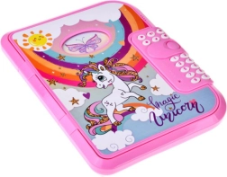 Dit roze dagboek met een betoverend eenhoornthema is ideaal voor kinderen die hun gedachten en schatten veilig willen bewaren. Het opent na het invoeren van een 4-cijferige pincode, zodat aantekeningen alleen voor de echte eigenaar zijn. Dankzij de Engelstalige stemgids is de bediening intuïtief en speels.