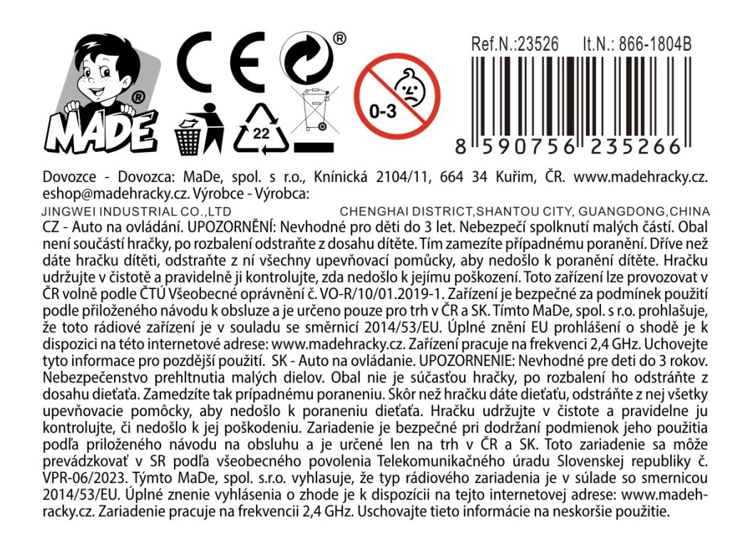 De speelgoedauto wordt geleverd in een praktische kunststof verpakking met venster en bevat batterijen, zodat hij direct klaar is voor gebruik. Een geweldige keuze voor de ontwikkeling van fijne motoriek, coördinatie en verbeeldingskracht.