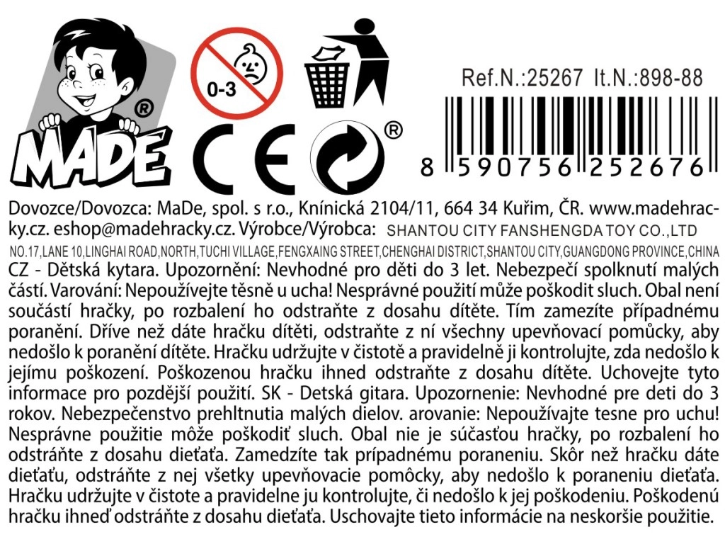 Ontdek de vreugde van muziek met deze lichte en duurzame kindergitaar, ideaal voor de eerste stappen van kleine en grote muzikanten. Dankzij de compacte afmetingen van 57,5 × 21,5 × 7,3 cm ligt hij prettig in de hand, de kleurrijke afwerking stimuleert creativiteit en het slijtvaste kunststof materiaal zorgt voor een lange levensduur. Geleverd in open verpakking, geen batterijen nodig.