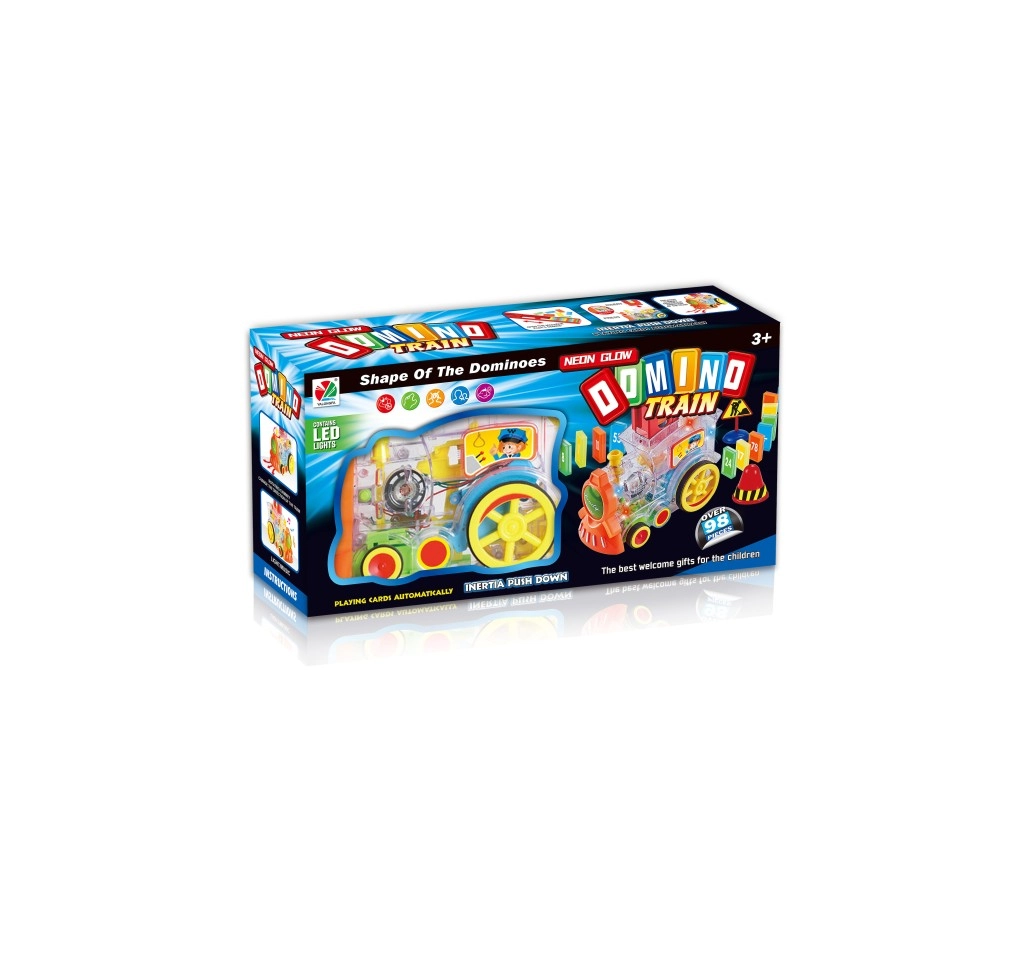 Een leuke locomotief voor kinderen die automatisch domino’s neerzet en van elk spel een magische show maakt. Bevat meer dan 98 stuks, LED-verlichting, geluidseffecten, een roterende schoorsteen en een openbaar domino-vulvak voor eenvoudig bijvullen.