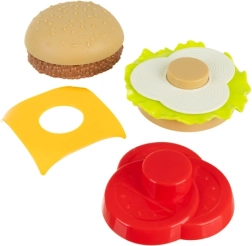 De onderdelen van burger en hotdog kunnen naar wens worden gelaagd en gewisseld – kinderen oefenen fijne motoriek en creativiteit bij het bouwen van het “perfecte” menu.