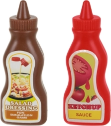 Een frietbakje met losse stukjes en flesjes ketchup of saus geven het spel een realistische touch en leren kinderen serveren zoals in een restaurant.