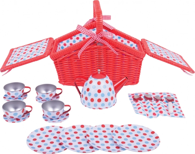 Deze prachtige theeset is ideaal voor kinderen vanaf 3 jaar. Het bevat alles wat nodig is voor een theekransje, alles in een draagbare rode rieten mand.