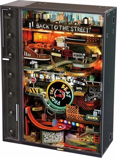Een miniatuurpanorama van een pulserende hiphop-straat brengt vloeiende knikkerbewegingen over een baan van 233 cm, versterkt door dynamische neon-LED-verlichting. Dankzij de efficiënte motor met hoog koppel keren de knikkers betrouwbaar terug via de automatische lift, zodat je kunt genieten van een ononderbroken spektakel.