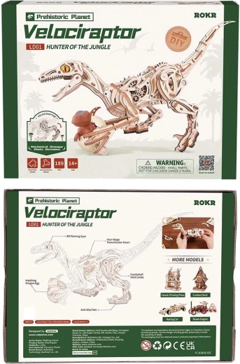 Bouw een iconische dinosaurus die echt tot leven komt! Deze 3D houten mechanische velociraptor-puzzel van ROKR biedt een veeraandrijving zonder batterijen, een realistische loop dankzij de 4-traps overbrenging en nauwkeurig laser-gesneden onderdelen voor montage zonder lijm. Een geweldige keuze voor creatief en educatief spel, als decoratie én origineel cadeau.