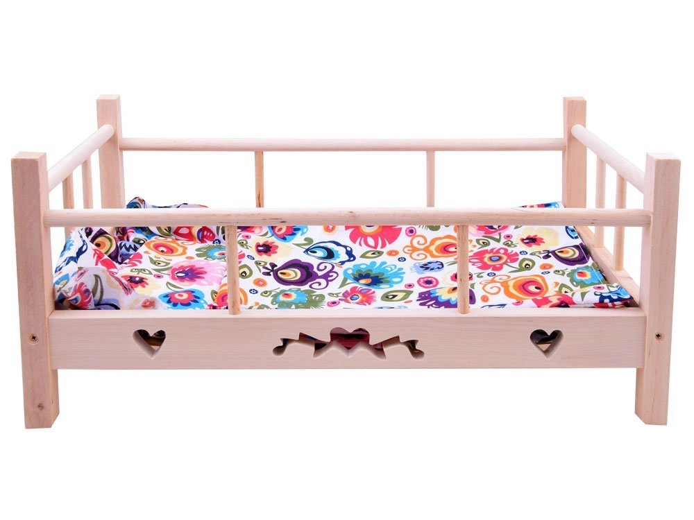 Hartjes- en vlinderuitsparingen en verhoogde zijkanten geven het bedje charme en zorgen ervoor dat de pop tijdens het slapen op zijn plek blijft.