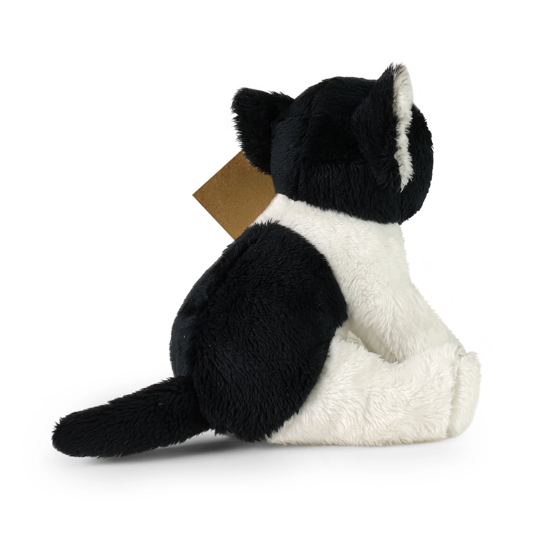 Deze zittende pluche kat in zwart‑wit is de ideale knuffel voor spelen en in slaap vallen. Hij blinkt uit door realistische details, een zachte touch en zorgvuldig handwerk, waardoor hij bijzonder geloofwaardig oogt.