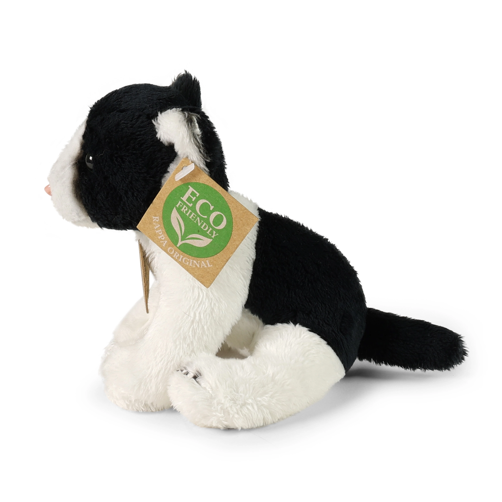 Een schattige zwart‑witte pluche kat van 14 cm hoog die zowel kinderen als volwassenen blij maakt. Dankzij het handmatige vakmanschap oogt hij levensecht en is hij gemaakt van superzachte pluche met een veilige, gerecyclede vulling. Hij behoort tot de exclusieve collectie van Rappa en is geschikt vanaf de geboorte.