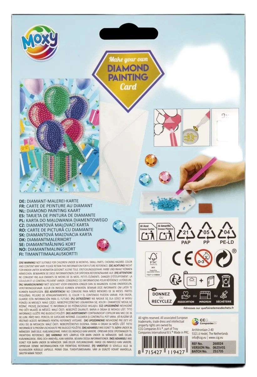 Ontdek de magie van ontspannend creatief bezig zijn met deze praktische set voor diamantschilderen van 18 × 13 cm. Maak eenvoudig een fonkelend plaatje dankzij het nummersysteem en de meegeleverde accessoires. In de verpakking zitten verschillende soorten diamanten/steentjes, een voorbeeld, een applicatiepen, een kleefkubusje, een schaaltje en een cadeauenvelop – alles wat u nodig heeft om een prachtig sprankelend werk af te maken.