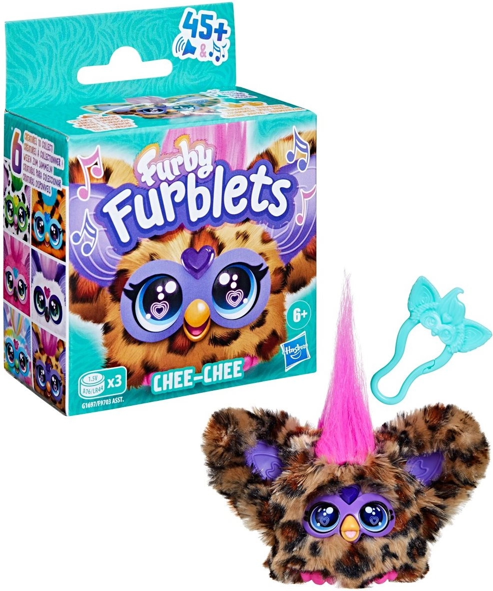 Ontdek het schattige vriendje Furby Furblet Chee-Chee, met meer dan 45 geluidsreacties, vrolijke muziek en communicatie in Furbish. Dankzij de afneembare clip bevestig je hem eenvoudig aan een rugzak of tas en geniet je overal van plezier.