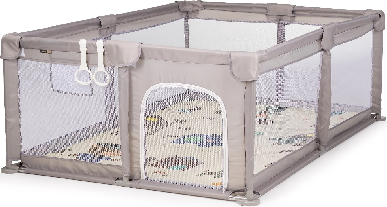 De praktische en veilige kinderbox CHIPOLINO Lotus Beige biedt je baby een ruime plek om te spelen en te rusten. Dankzij de grote speelruimte, ademende gaaspanelen en zijdeur met rits heeft je kind altijd voldoende ruimte, frisse lucht en de mogelijkheid om zelfstandig in en uit te gaan. Het versterkte frame met zachte bekleding en de afgeronde hoeken zorgen voor een hoge mate van veiligheid, terwijl 2 grijpringen helpen bij het oefenen met staan.