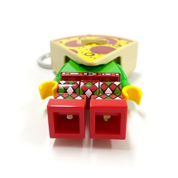 Het direct herkenbare uiterlijk van de LEGO‑minifiguur in pizzakostuum geeft je sleutels een uniek en speels karakter.