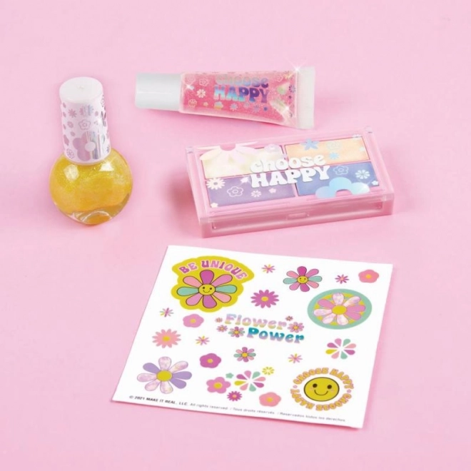 Het palette met vier oogschaduwtinten maakt het mogelijk om kleuren naar stemming te combineren, terwijl de nagellak en lipgloss de look een subtiele sprankeling geven. Het stickervel vergroot de versiermogelijkheden en stimuleert de creativiteit.