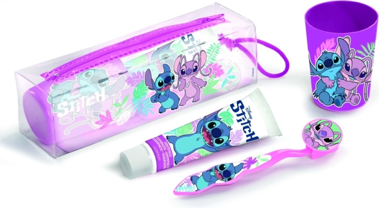 Maak de dagelijkse tandverzorging voor kinderen leuker met deze schattige set met STITCH-motief. Bevat een tandenborstel met zachte borstelharen, een milde kindertandpasta en een praktisch spoelbekertje. Het kleurrijke design met het geliefde figuurtje motiveert tot regelmatig poetsen en helpt goede hygiënegewoonten op te bouwen.