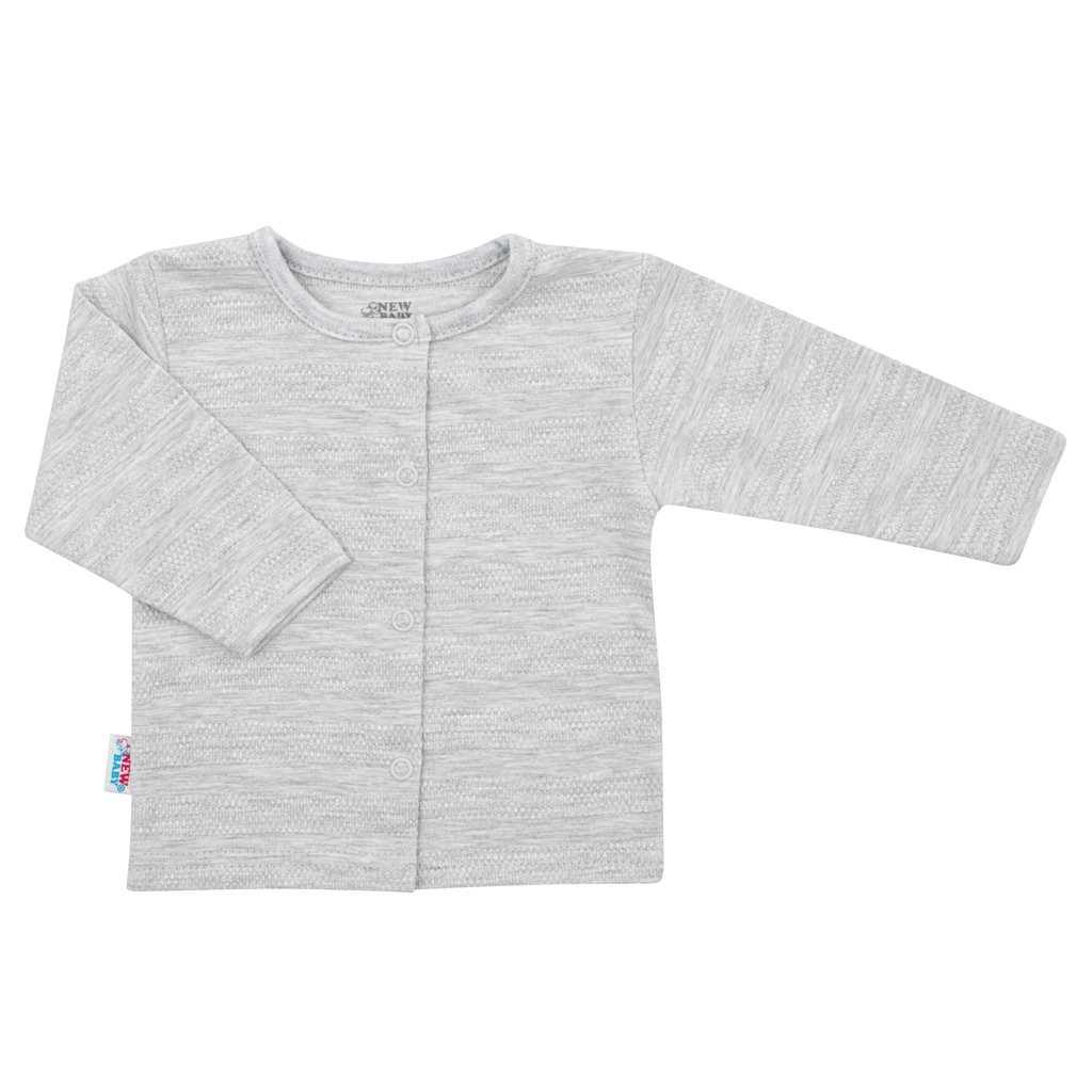 Het zachte grijze jasje met sluiting over de hele lengte is ideaal om te layeren en houdt de baby warm zonder ingewikkeld over het hoofd aan te trekken.