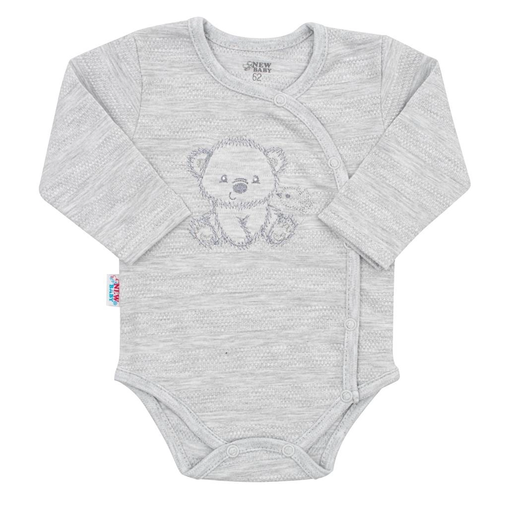 De complete 4-delige New Baby Sweet Bear startset voor de kraamafdeling in een universele grijze kleur biedt alles wat een baby vanaf de eerste dagen nodig heeft. Bevat een volledig doorknoopbare romper met lange mouwen, voetenzakpyjama/boxpakje met voetjes, zacht jasje en een mutsje met striklinten. Gemaakt van 100% katoen voor de gevoelige babyhuid, met een schattige berenborduursel en praktische drukknopen.
