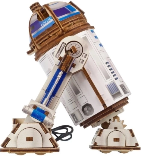 Bouw je eigen R2‑D2‑droid van Ugears en voeg een stukje sterrenstelsel toe aan je collectie. Dit gedetailleerde model van gekleurd triplex heeft bewegende poten, een opwindmotor voor zelfstandig rijden tot wel 200 cm en een functionele LED‑projector met negen verwisselbare dia’s. De montage verloopt zonder lijm en gereedschap en dankzij het doordachte ontwerp staat het model stabiel, zowel rechtop als in achterovergekantelde positie.