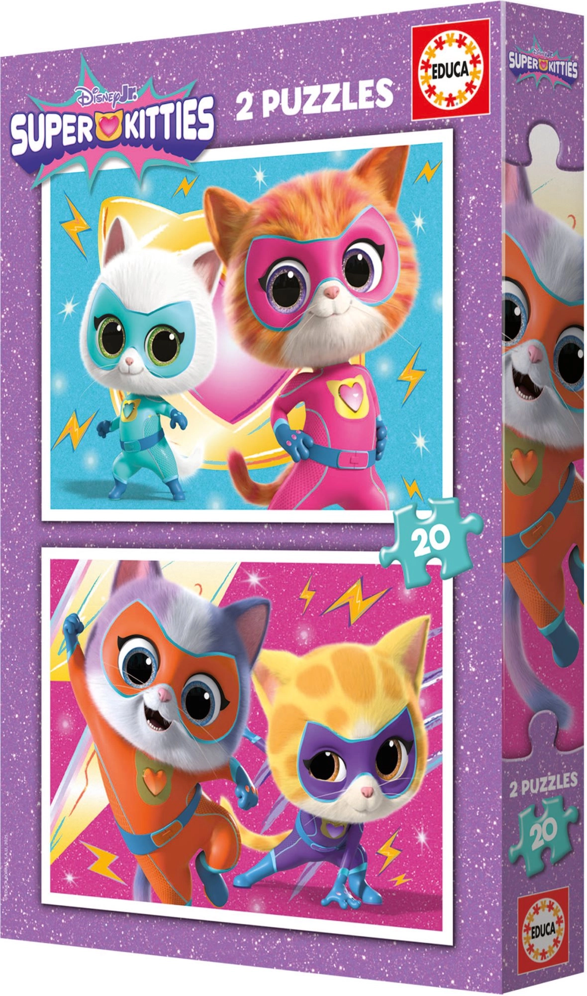 Ontdek de magie van puzzels met de helden uit de serie Super Kitties. De verpakking bevat twee afzonderlijke puzzels met hetzelfde aantal stukjes en hetzelfde eindformaat. Dankzij de 20 stukjes per puzzel zijn ze ideaal voor kinderen die hun concentratie en fijne motoriek willen verbeteren.