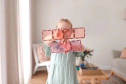 Kinderen ontdekken symmetrie, vormen, ruimtelijke relaties en basisprincipes van natuurkunde. Ondersteunt probleemoplossing, samenwerking en fijne motoriek – geweldig voor Montessori- en zintuiglijke activiteiten.
