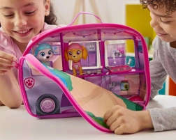 De uitklapbare caravan van ca. 30 cm verandert na openen in een rijk geïllustreerd mini-huis met parkmat voor picknicks en rust na de missie. Kinderen beleven verhalen geïnspireerd op de serie dankzij de figuren Skye, Liberty en Everest met knikkende kopjes en beweegbare ledematen.