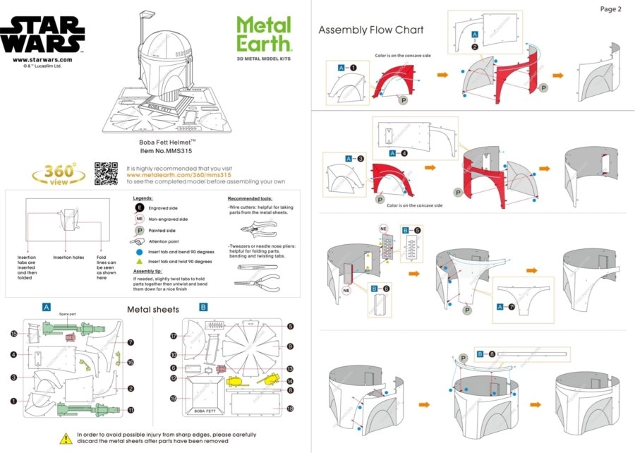 Bouw de iconische helm van de legendarische premiejager Boba Fett van hoogwaardige stalen plaatjes. Het Metal Earth-model onderscheidt zich door nauwkeurige afwerking en realistische details dankzij lasergravure. Het bouwen is schoon en technisch – de onderdelen worden met vergrendelingen verbonden, dus lijm is niet nodig.