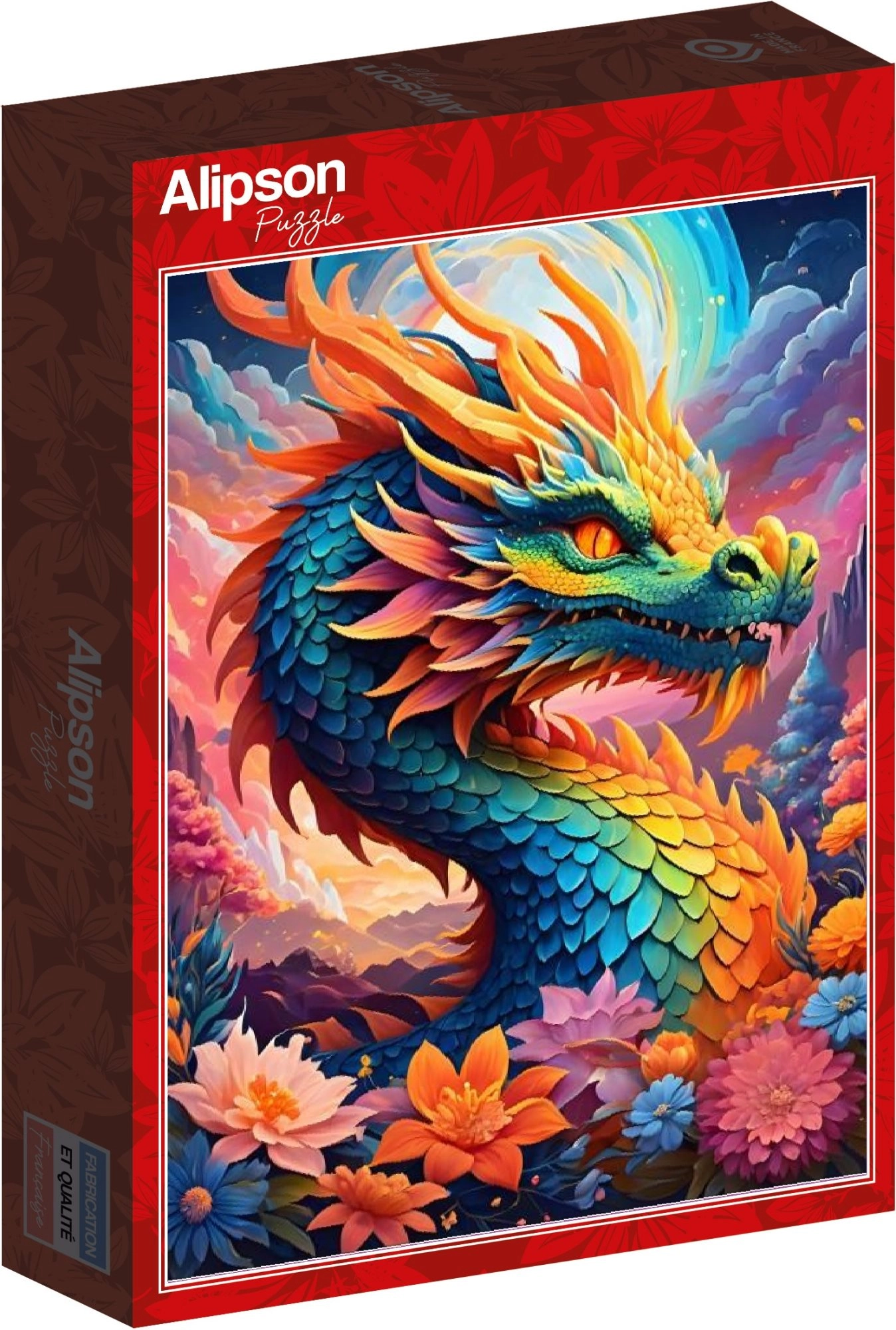 Ontdek de magie van puzzelen met ALIPSON Bonte draak. Duizend nauwkeurig vervaardigde stukjes vormen een indrukwekkend motief van een kleurrijke draak, dat zowel beginners als ervaren puzzelaars zal bekoren. Dankzij het uiteindelijke formaat van 47,8 × 69 cm is het resultaat ideaal om tentoon te stellen.