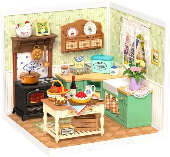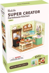 Ontdek een wereld van detail en gezelligheid in miniatuur. Deze precieze DIY-set begeleidt je bij het bouwen van een boerderijkeuken met fornuis, gootsteen, kookeiland en veel realistische accessoires. Dankzij de LED-verlichting komen elk meubelstuk en elke decoratie prachtig tot hun recht en wordt het uiteindelijke model een blikvanger op je plank of werkplek.