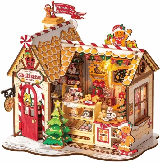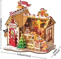 Deze gedetailleerde 3D houten puzzel van een peperkoekhuisje brengt een feestelijke sfeer in elk interieur. Een mat dak met suikersstokken, een rode deur, etalages vol lekkers en gezellig warm LED-licht vormen een unieke miniatuur, ideaal voor op de plank of vensterbank. Voor de montage is geen lijm of gereedschap nodig – de onderdelen passen precies in elkaar en het eindmodel is stabiel.
