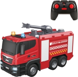 Het absolute hoogtepunt is het volledig functionerende sproeiwaterkanon, dat eenvoudig te vullen is en op afstand kan worden bediend. De wagen ondersteunt zeskanaals besturing, inclusief vooruit/achteruit rijden, sturen en het activeren van licht- en geluidseffecten. De compacte afmetingen zorgen voor stabiliteit en eenvoudige hantering, zowel binnen als buiten.