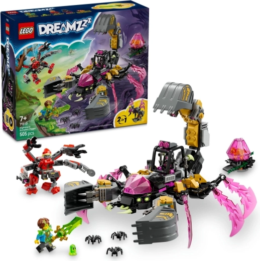 LEGO DREAMZzz Schorpioengraafmachine uit nachtmerries geeft kinderen de keuze: bouw een angstaanjagende schorpioen met grote scharen en een graafarm aan de staart, of een elegante biomechanische wesp met kristallen vleugels en een giftige angel. Dankzij de opvallende roze transparante “kristallen” springt het model direct in het oog en nodigt het uit tot actievol spel.