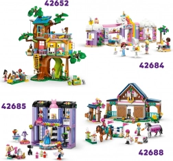 Ontdek de kleurrijke wereld van vriendschap en fantasie met het LEGO Friends clubhuis in Heartlake City. Het driedelige model in een mix van blauwe, roze en gele elementen is ontworpen voor gemakkelijke toegang en goed zicht op het interieur dankzij grote ramen. Kinderen beleven actie met de kabelbaan, glijbaan en klimwand, maar ook rustige momenten in het atelier of de keuken.