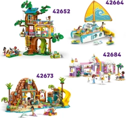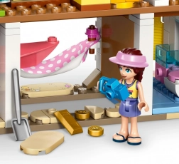 Ontdek zomerse avonturen met de bouwset LEGO Friends strandhuis met zeehonden voor kinderen vanaf 7 jaar. Het tweelaagse huisje in pasteltinten biedt een terras, veranda, buitentrap en een kleine strandzone met palmboom. Binnen vind je een keuken met smoothiemixer, drie bedden en een relax-hangmat. Inclusief 4 minipoppetjes, 2 schattige zeehonden en veel accessoires voor surfen, kajakken en schatzoeken.