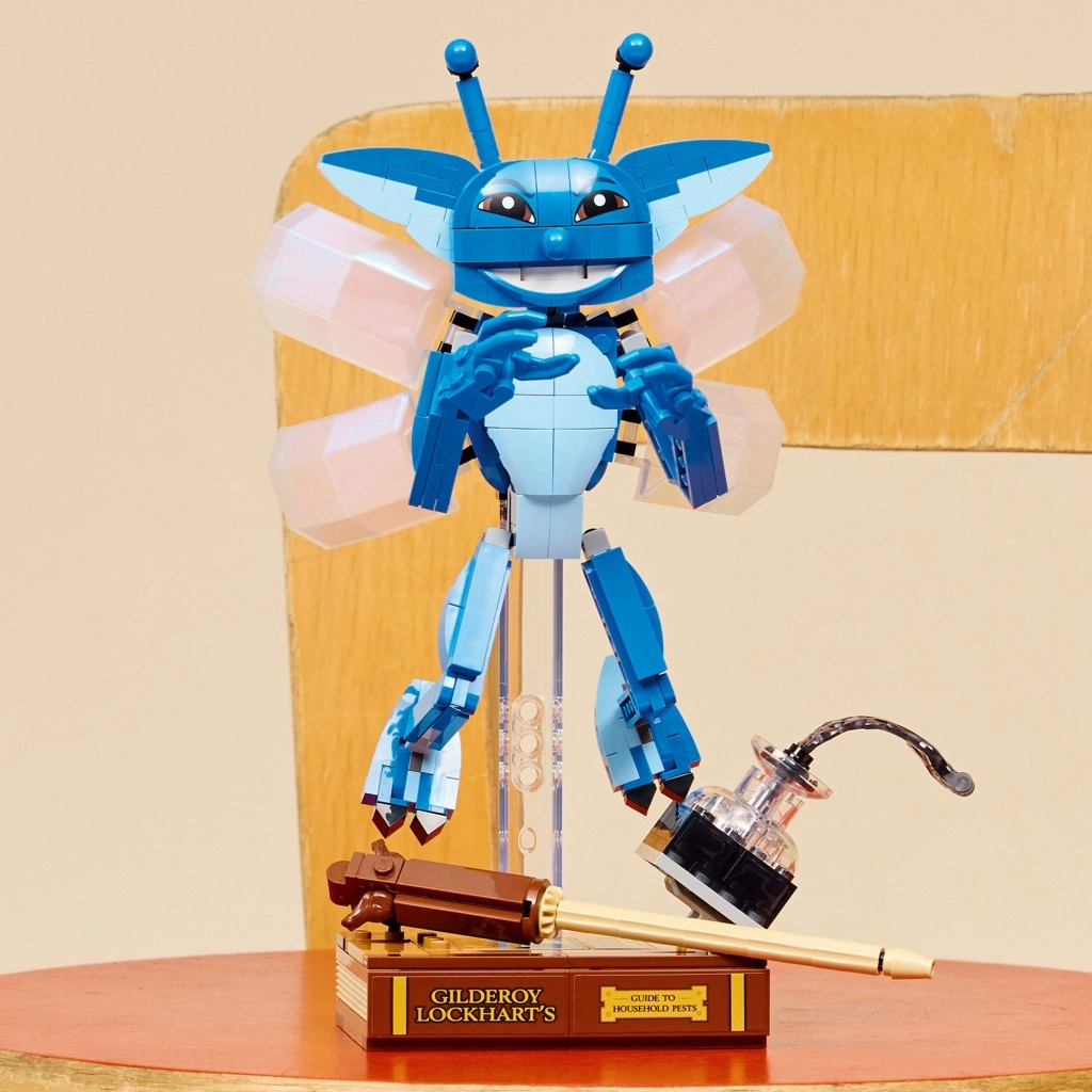 De set bevat indrukwekkende accessoires – het boek van GILDEROY LOCKHART met een gedetailleerde rug en goudkleurige opdruk, een transparante inktfles en een gouden toverstok. Het model kan op een transparante standaard worden tentoongesteld of rechtop worden neergezet. De bouw wordt vergemakkelijkt door de LEGO Builder app met een digitale handleiding, inzoomen en 3D-draaien.