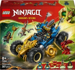De set bevat 387 onderdelen die creativiteit, fijne motoriek en verbeeldingskracht stimuleren. Het model is eenvoudig om te bouwen naar drakenmodus – het voorste deel draait en verandert in een drakenkop met transparante kap, de zijkanten zijn voorzien van roterende shuriken en de hele auto oogt dynamisch dankzij de grote wielen en gouden accenten.