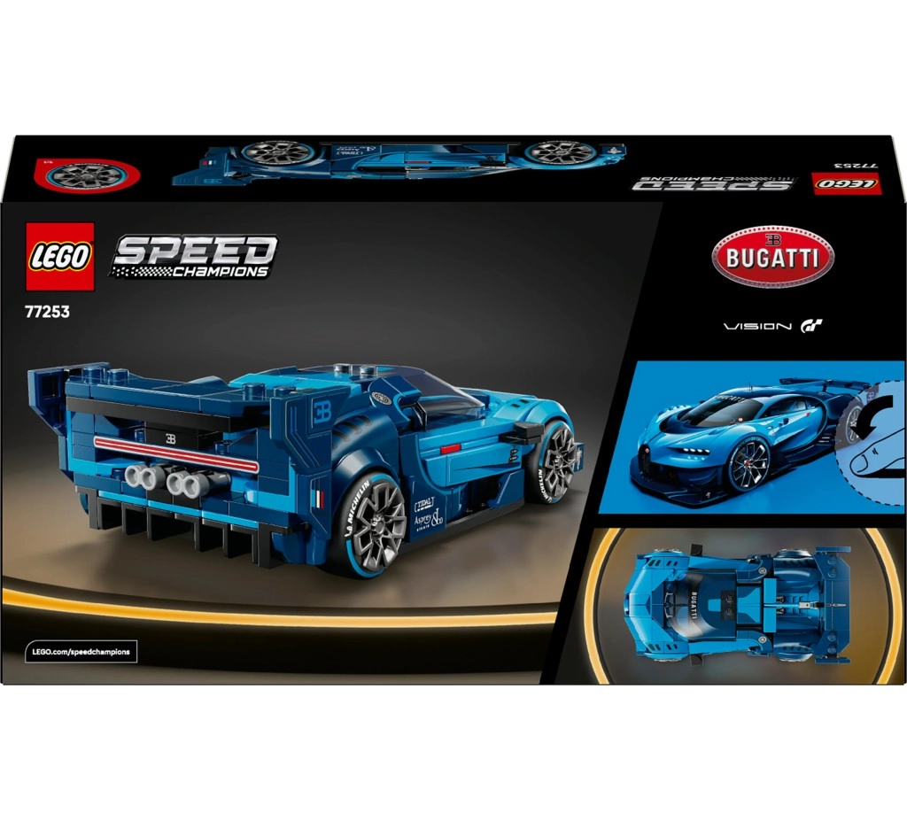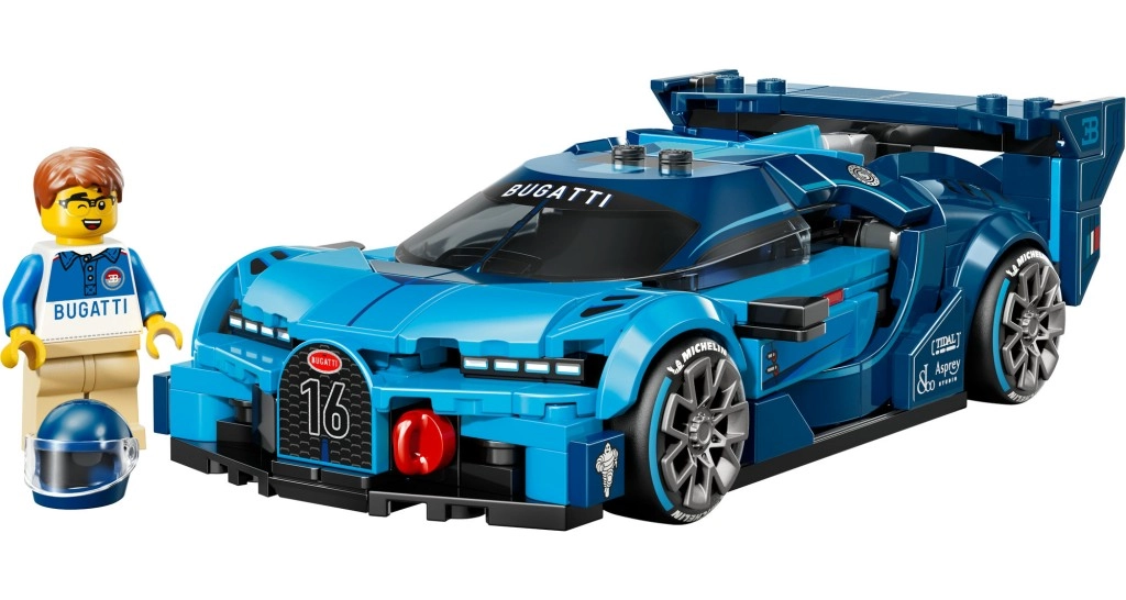 Beleef adrenalineraces met het model BUGATTI Vision GT, dat indruk maakt met de nauwkeurige carrosserievorm, de voorste hoefijzervormige grille met nummer 16, acht koplampen, een dakvin en een opvallende achtervleugel. Brede banden met opdruk geven de auto een realistische racelook en de coureursminifiguur in outfit met BUGATTI-logo past comfortabel in de cockpit.