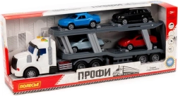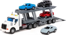 De verpakking bevat 4 autootjes die eenvoudig kunnen worden geladen, gelost en vervoerd. Dankzij realistische details, rollende wielen en functionele oprijplaten leren kinderen de basis van logistiek en coördinatie en beleven ze uren creatief speelplezier.