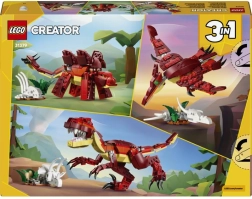De LEGO Creator 3-in-1 Wilde dinosaurus bouwset biedt kinderen en volwassen dinofans volop plezier en creativiteit. Bouw uit dezelfde set stenen eenvoudig een realistische velociraptor met beweegbare kaak, een stegosaurus met bewegende nek en poten of een pterosaurus met verstelbare vleugels. Elk model wordt aangevuld met thematische elementen zoals dinosauruseieren, een schedel en een ribbenkast, voor spannende verhalen en opvallende displays.