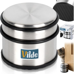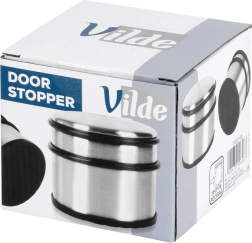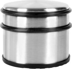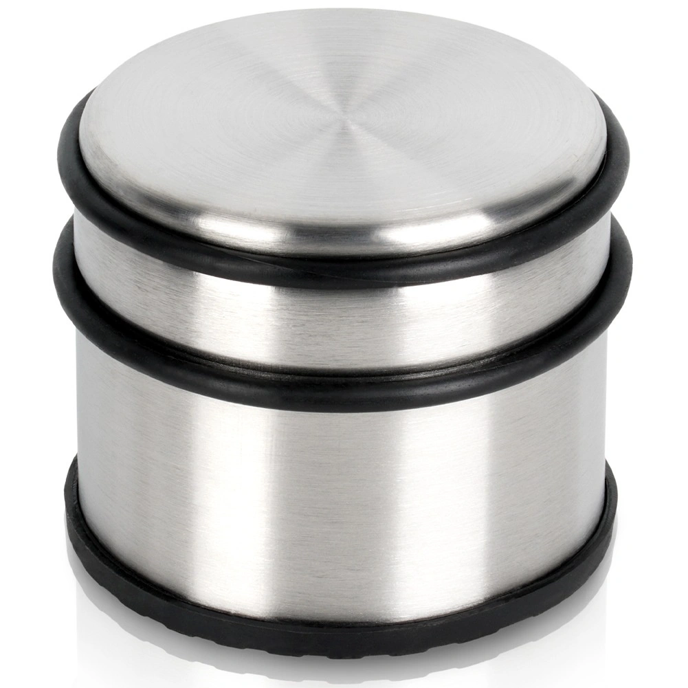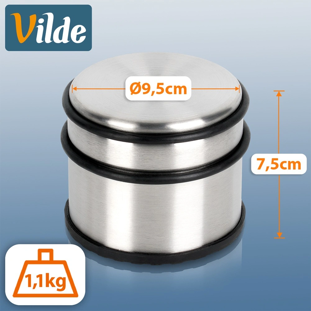 Elegante, zware deurstopper van roestvrij staal in zilverkleur, ideaal voor appartement, huis en kantoor. Het hoge gewicht van 1,1 kg zorgt voor stabiliteit, zodat de deur blijft staan waar u die nodig hebt. Rubberen ringen rondom beschermen de deur tegen stoten en de rubberen basis voorkomt wegglijden en beschermt de vloer.