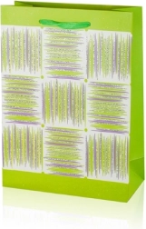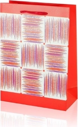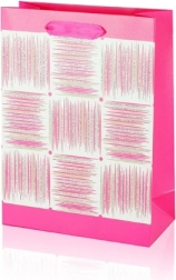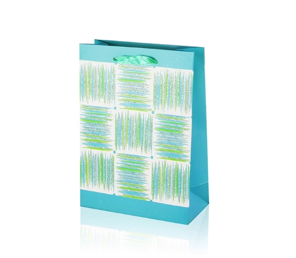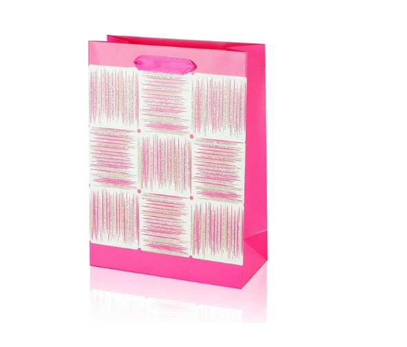 Deze A5-cadeautas combineert praktische afmetingen met een aantrekkelijk design. Het glanzende oppervlak, het decoratieve paneel met strepen en de lint-handgrepen geven je cadeau een premium uitstraling. De tas heeft vouwbare zijkanten en een stevige bodem voor stabiliteit bij het inpakken van items.