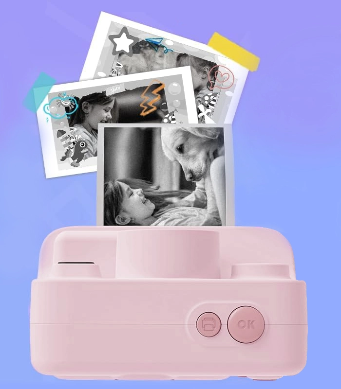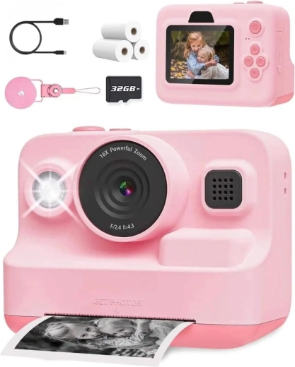 Roze kindercamera met geïntegreerde printer die fotograferen, video opnemen en leuke minigames in één toestel combineert. Dankzij thermisch printen krijgen kinderen hun afdrukken meteen – zonder inkt of toners. Inclusief 2,4" scherm, 1080P video, 32GB kaart in de verpakking, USB‑C opladen en 3 rolletjes papier voor urenlang knutselplezier. Ideaal voor kleine ontdekkers op uitstapjes, naar school en bij familieactiviteiten. Direct printen, eenvoudige bediening, duurzame constructie en rijke uitrusting inbegrepen.