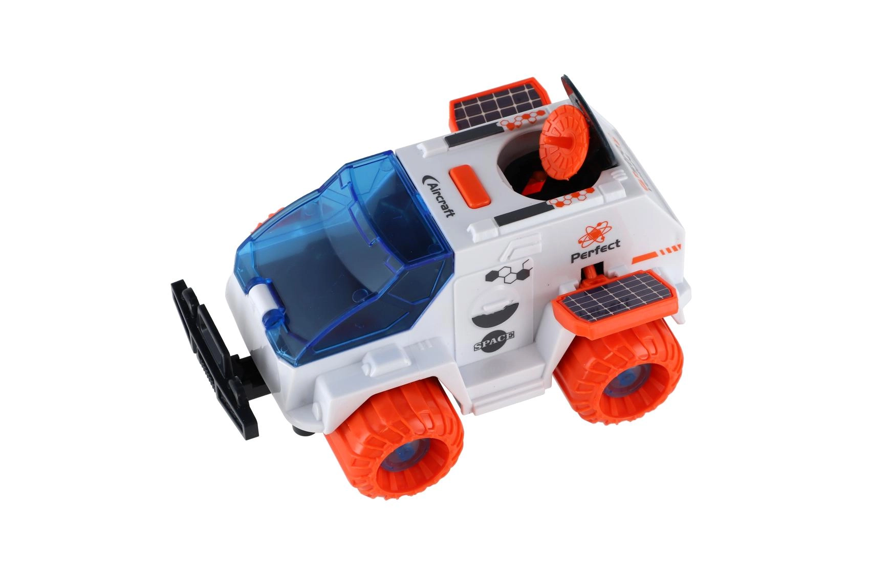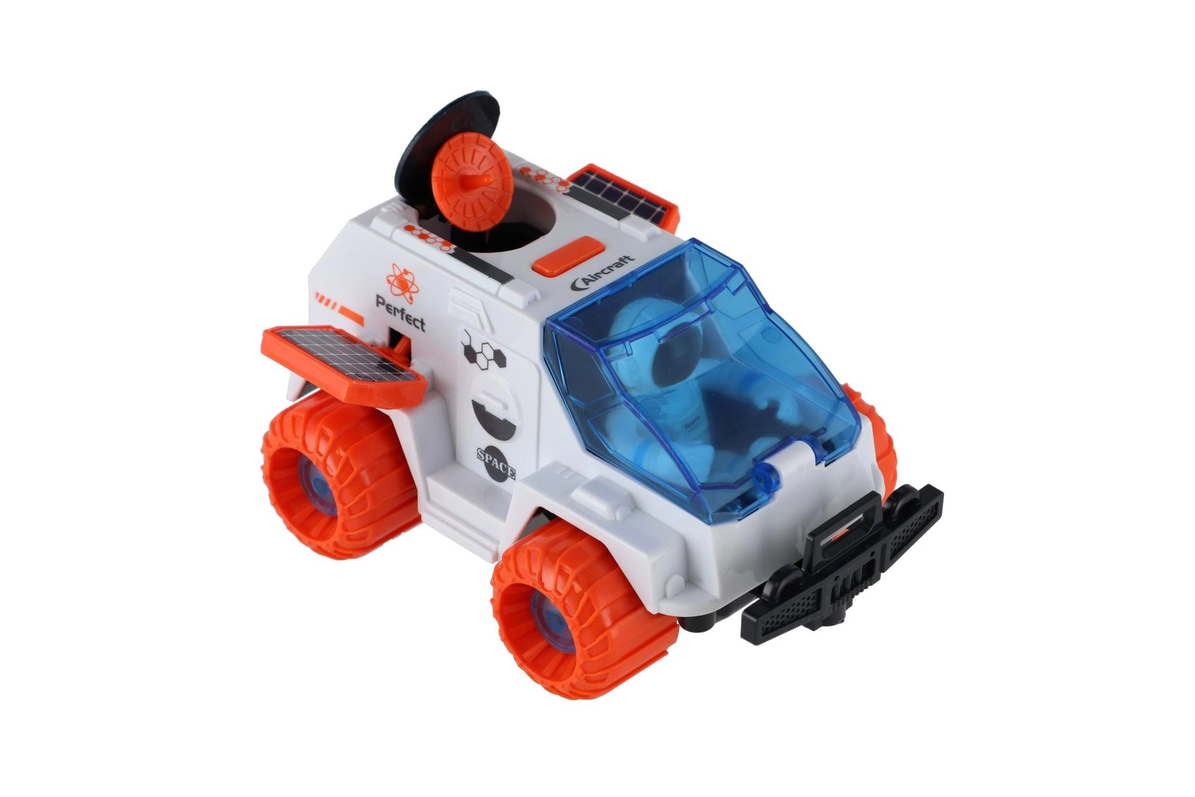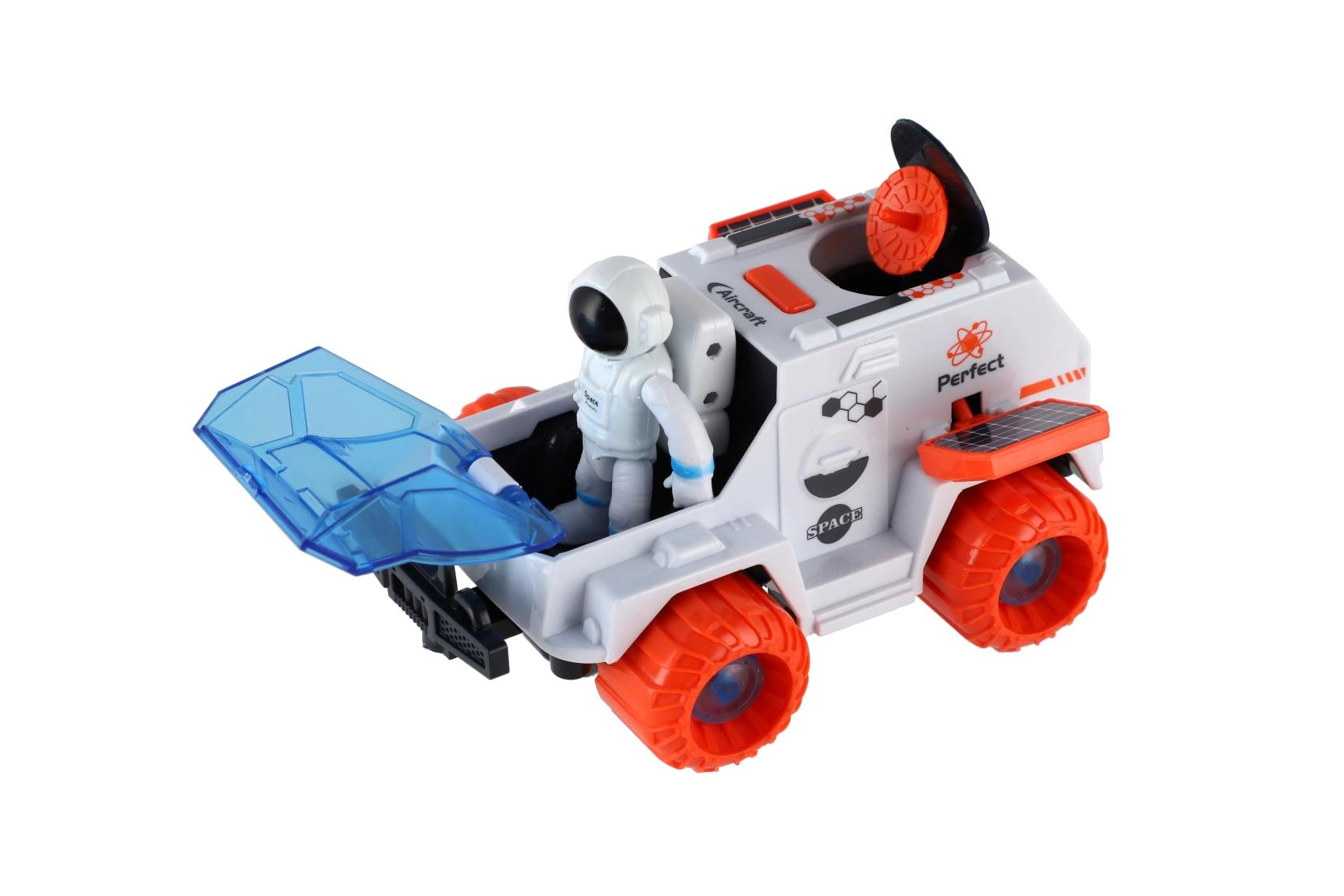 Deze kunststof ruimteverkenningsrover is het ideale speelgoed voor kleine ontdekkers. De vliegwielaandrijving zorgt voor eenvoudig rijden zonder batterijen en de grote oranje wielen kunnen over oneffen oppervlakken. Er zit ook een astronautenfiguur bij, zodat kinderen meteen hun eigen verhalen over galactische expedities kunnen verzinnen.