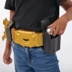 De riem met opvallende gesp en vleermuislogo biedt plaats aan batarangs en granaten, heeft meerdere houders en een modulaire indeling voor snelle toegang tijdens het spel.