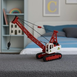 Dit gedetailleerde model van een rupskraan biedt kinderen een authentieke bouwplaatsbeleving. De vakwerkgiek oogt realistisch, terwijl de metalen cabine het speelgoed duurzaamheid en een hoogwaardige uitstraling geeft. De draaibare bovenbouw maakt soepel manoeuvreren rond de eigen as mogelijk en de opendeuren nodigen uit tot fantasierijk spel als kraanmachinist.