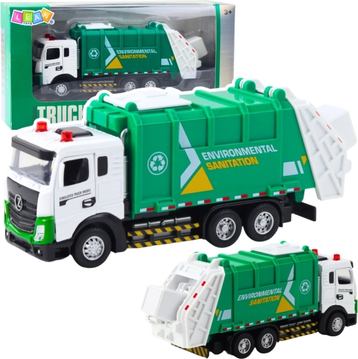 Deze gedetailleerde vuilnisset biedt kinderen een authentieke ervaring van het werk van gemeentelijke diensten. Dankzij de metalen cabine is het speelgoed duurzaam en veilig, terwijl openende deuren een kijkje binnenin mogelijk maken en realistisch spel stimuleren.