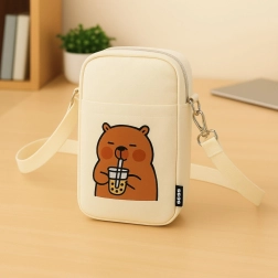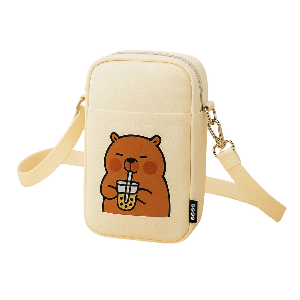 Dankzij de verstelbare schouderband pas je de lengte gemakkelijk aan je lichaam aan. Het hoofdvak met rits bergt je essentials veilig op, terwijl het open voorvak snelle toegang tot kleine items biedt. De voorzijde met de schattige capibara met bubble tea geeft de tas een originele uitstraling die zowel kinderen als volwassenen aanspreekt.