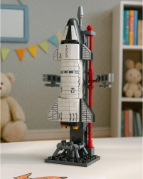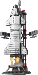 Deze bouwset neemt kinderen mee in de fascinerende wereld van de ruimtevaart. Na het bouwen ontstaat een indrukwekkend model van een ruimteraket met lanceertoren, geschikt om mee te spelen én om neer te zetten. Nauwkeurig vervaardigde componenten met details zoals imitatie van straalpijpen, motoren en technische structuren van het platform zullen elke jonge liefhebber blij maken.