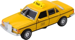Robuuste metalen body, verchroomde details en duidelijke TAXI-markering zorgen voor duurzaamheid en de herkenbare look van een klassieke sedan.