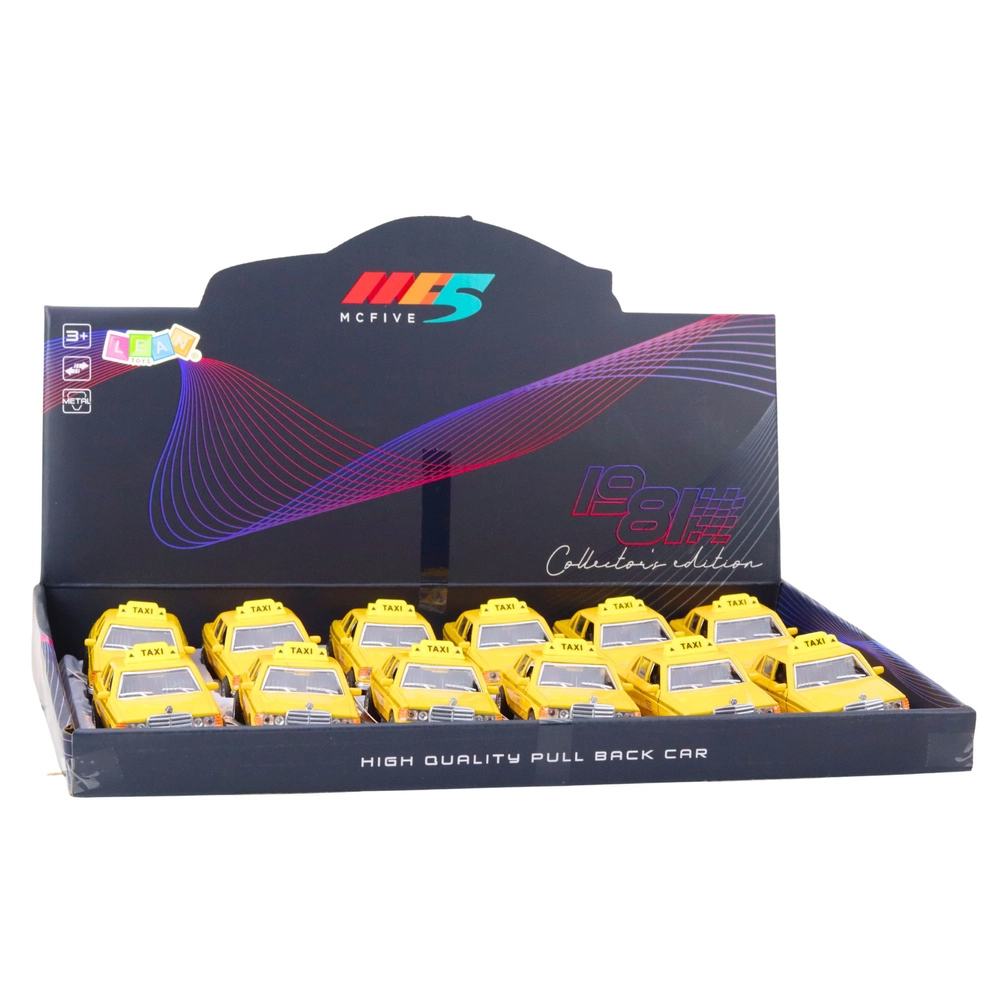 De pull-back aandrijving trek je kort naar achteren om vervolgens te zien hoe de wagen vooruit rijdt – ideaal voor races en stedelijke missies. Dankzij het compacte formaat past de taxi gemakkelijk in een rugzak, dus je neemt hem overal mee naartoe.